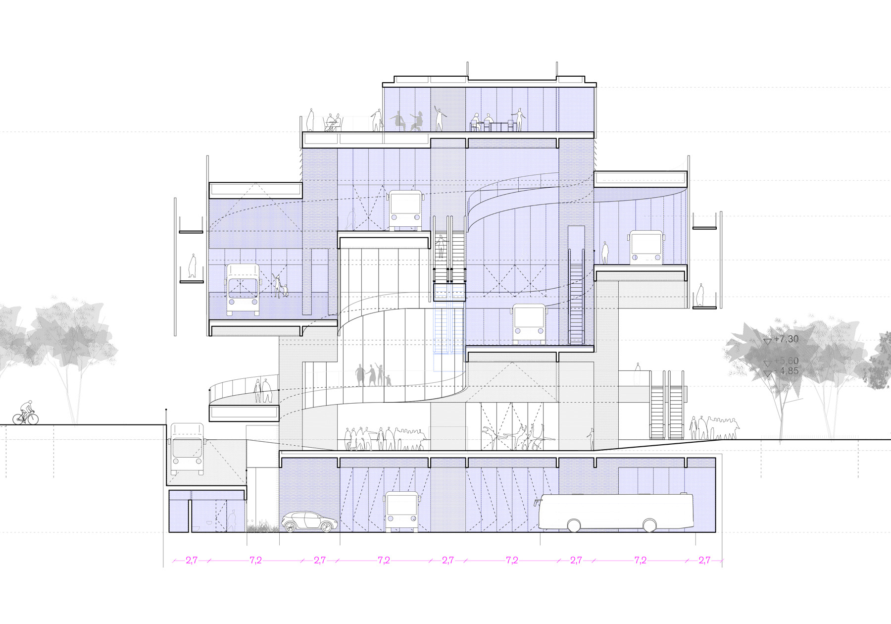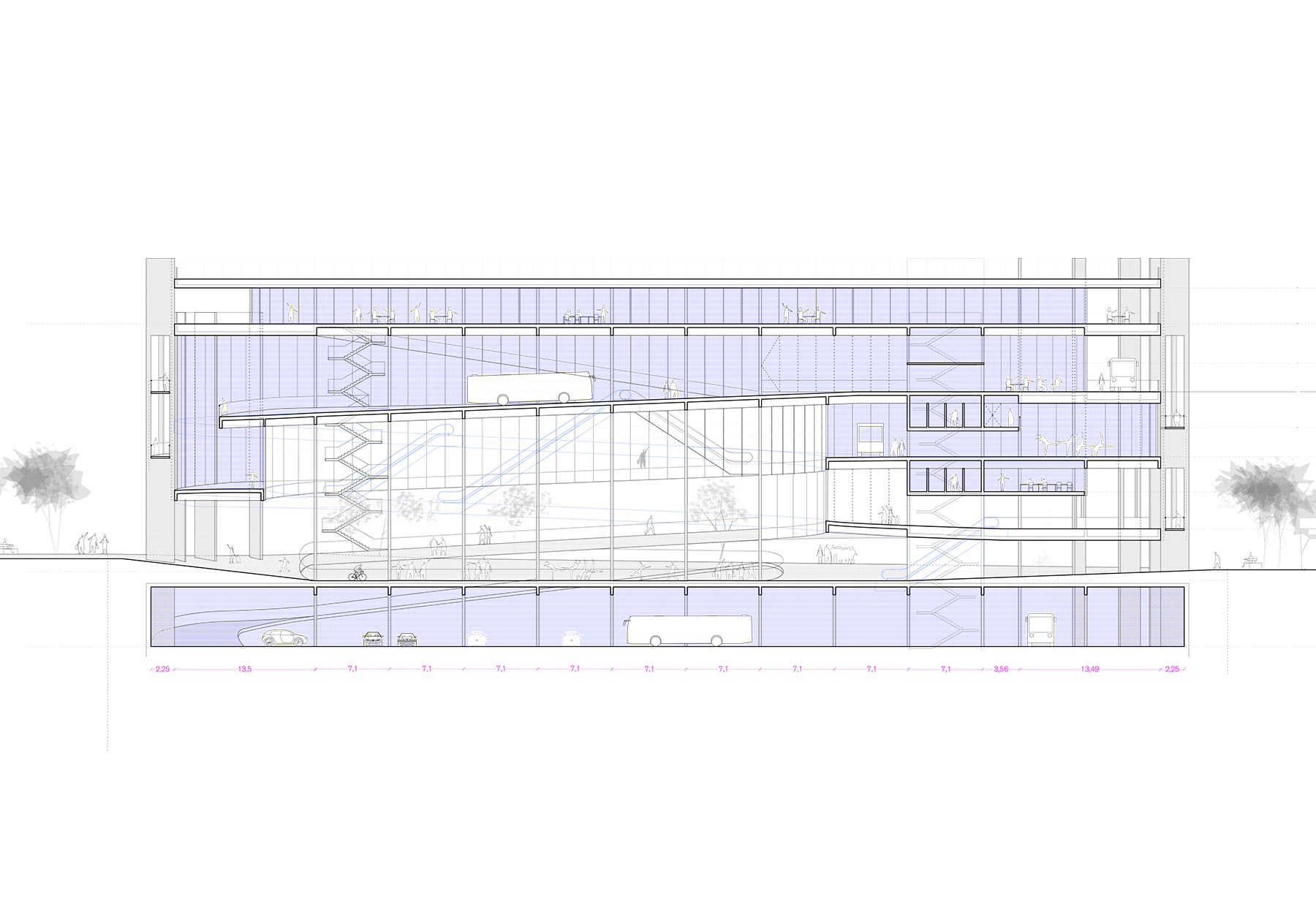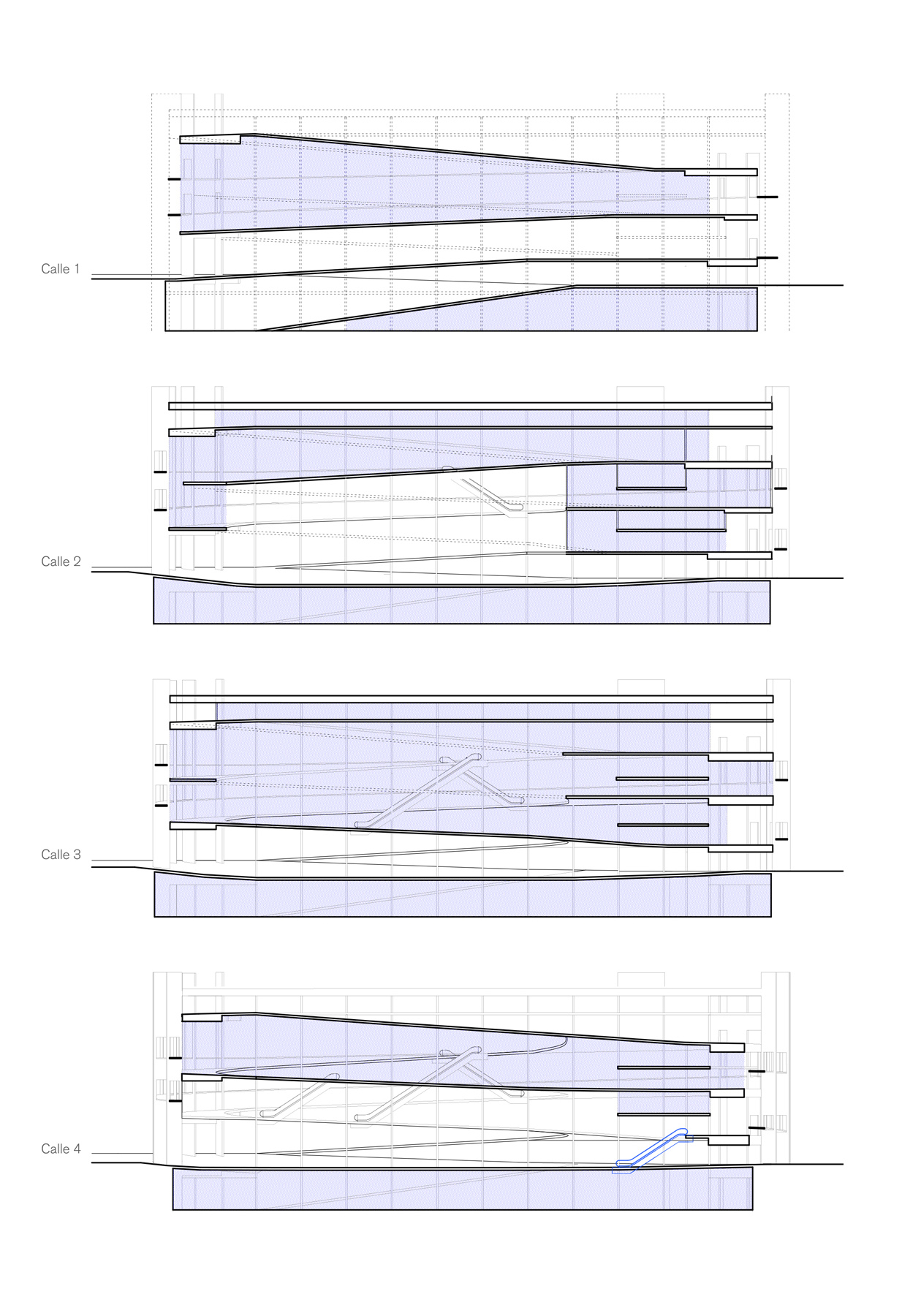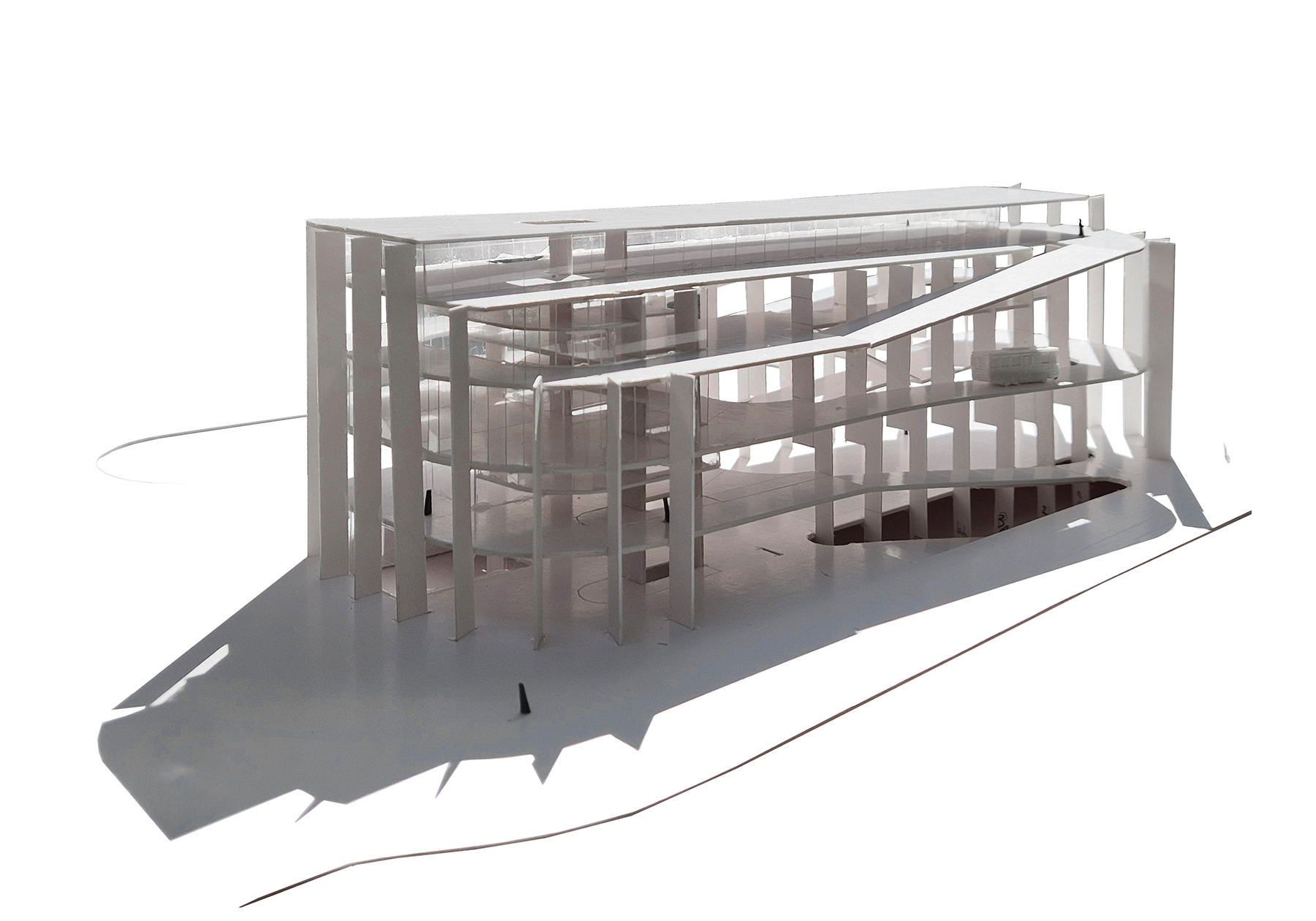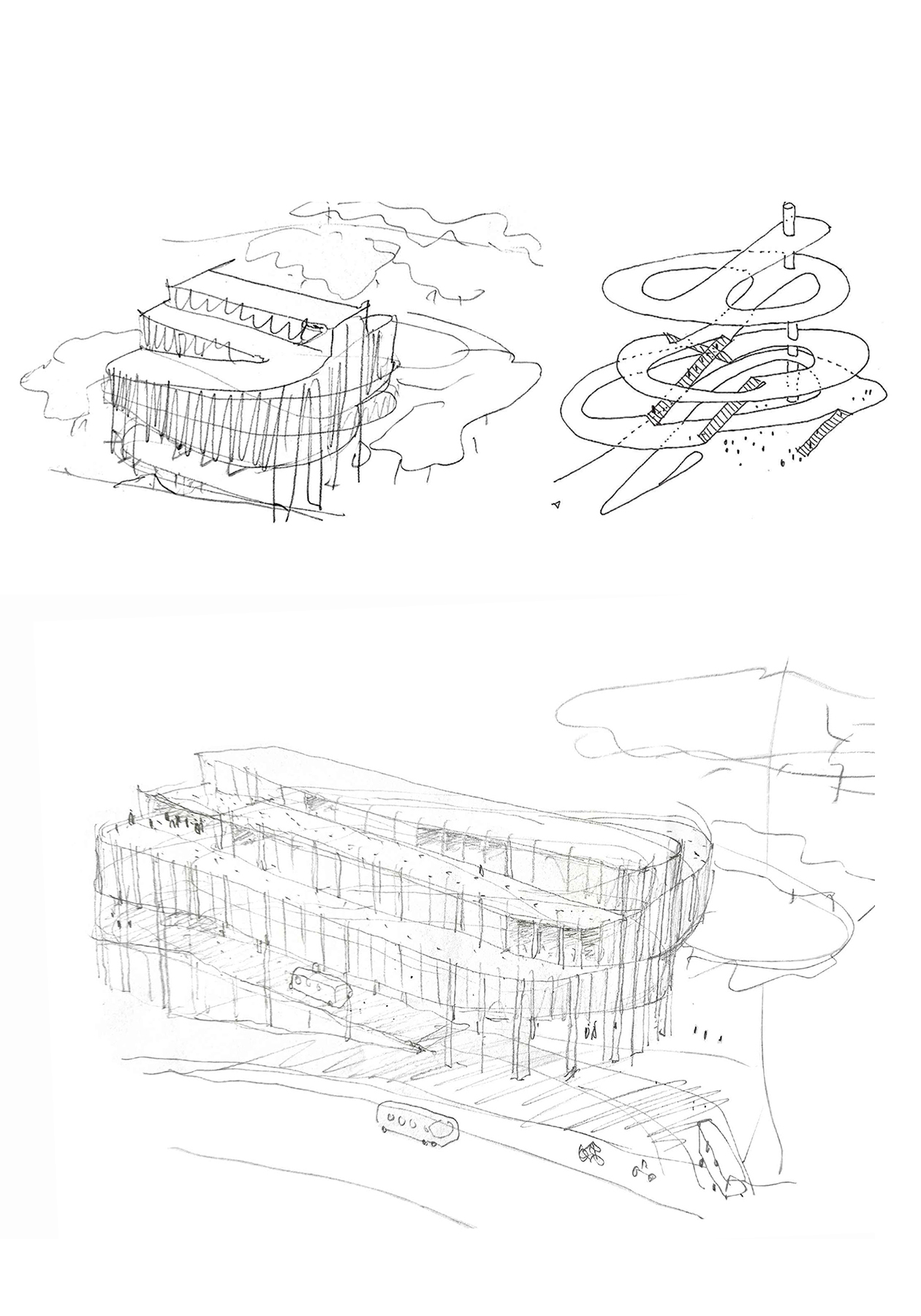 the museum stands out not because it tries to be unique, but because it is clear, strong, and easy to read. its height and structure resonate with the neighboring residential building, defining the street with precision. at the same time, it is porous and very open to movement and sight. by unfolding public space vertically, two conditions can coexist: an outdoor entrance atrium and a large multifunctional interior void, ready to host activities ranging from sports to performances, celebrations, or installations. there is also a direct path leading to the roof, a raised plaza that satisfies an innate desire to climb and see farther, and perhaps enjoy a drink while doing so. inside, any moment can capture and freeze the constant motion of the place, recalling the atmosphere of memorable parking structures, with their uninterrupted flow of views, actions, movements, and relationships with others, with past moments, and with those still to come. it becomes a sequence of events inhabiting a single infrastructure, always the same yet always different.