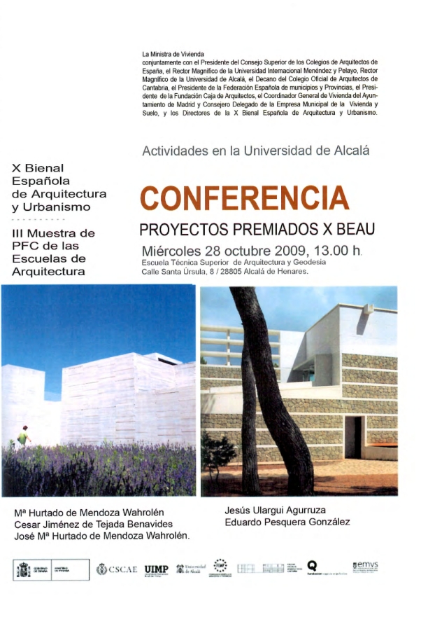 28/10/2009 at 13:00h: higher technical school of architecture and geodesy. calle santa úrsula,8/ 28805 alcalá de henares.