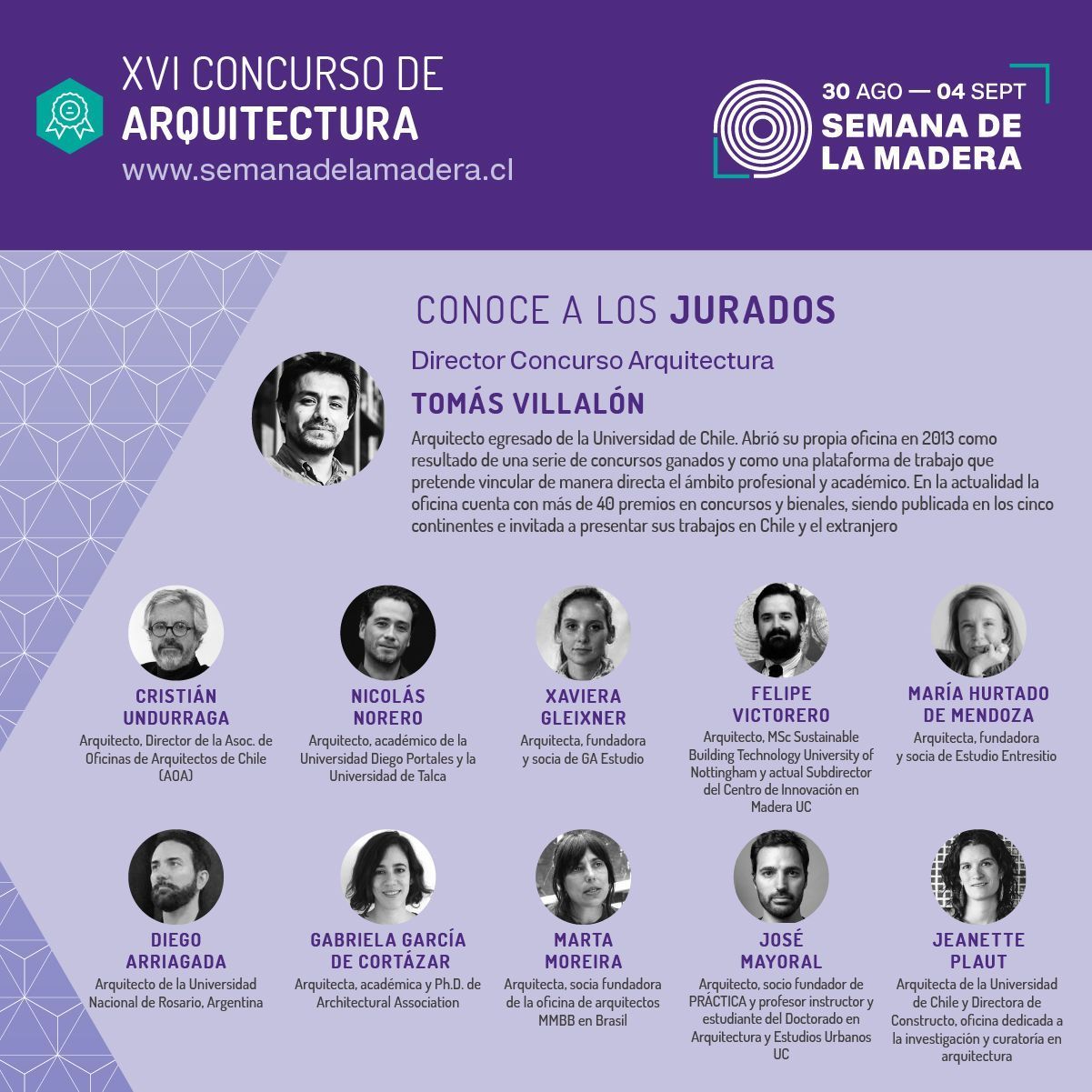 as part of the events organized for the week of the wood in chile, that will run from september 30 to september 4, maría hurtado de mendoza has been part of the jury for the xvi architecture competition for students. the other jurors were diego arriagada, gabriela garcía de cortazar, xaviera gleixner, josé mayoral, marta moreira, nicolás norero, jeanette plaut, cristián undurraga and felipe victorero. the topic was “new spaces for work. the winners will be announced on friday september the 3rd. congratulations to all the participants!