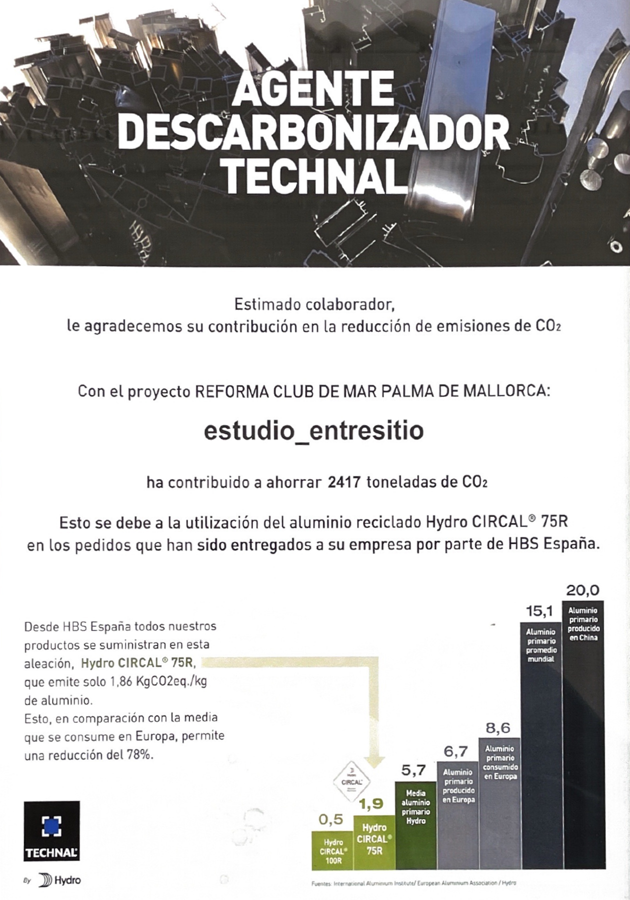 This is due to the use of Hydro CIRCAL 75R recycled aluminum in the orders delivered to the company by HBS Spain.