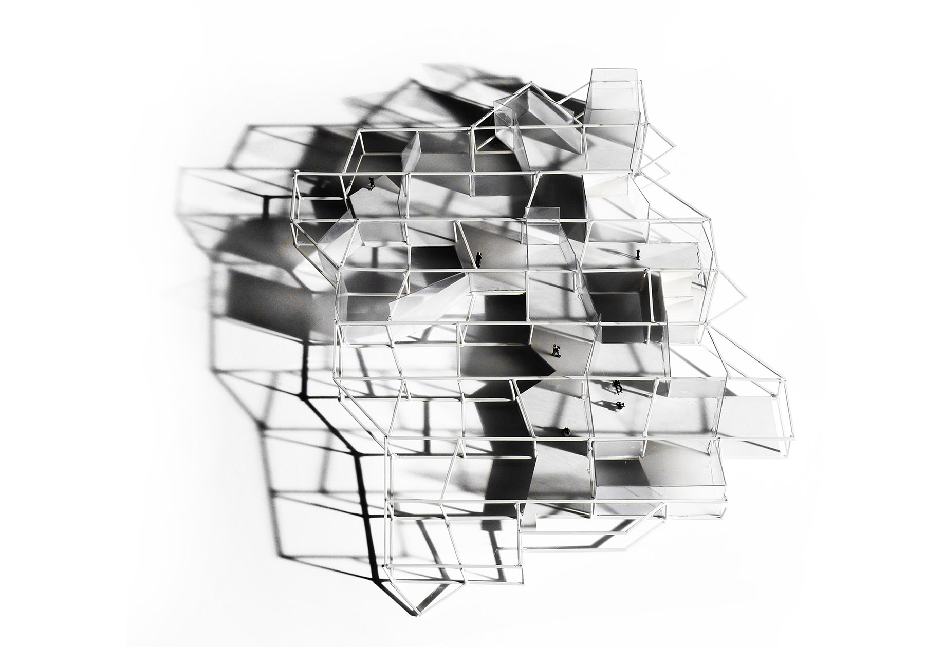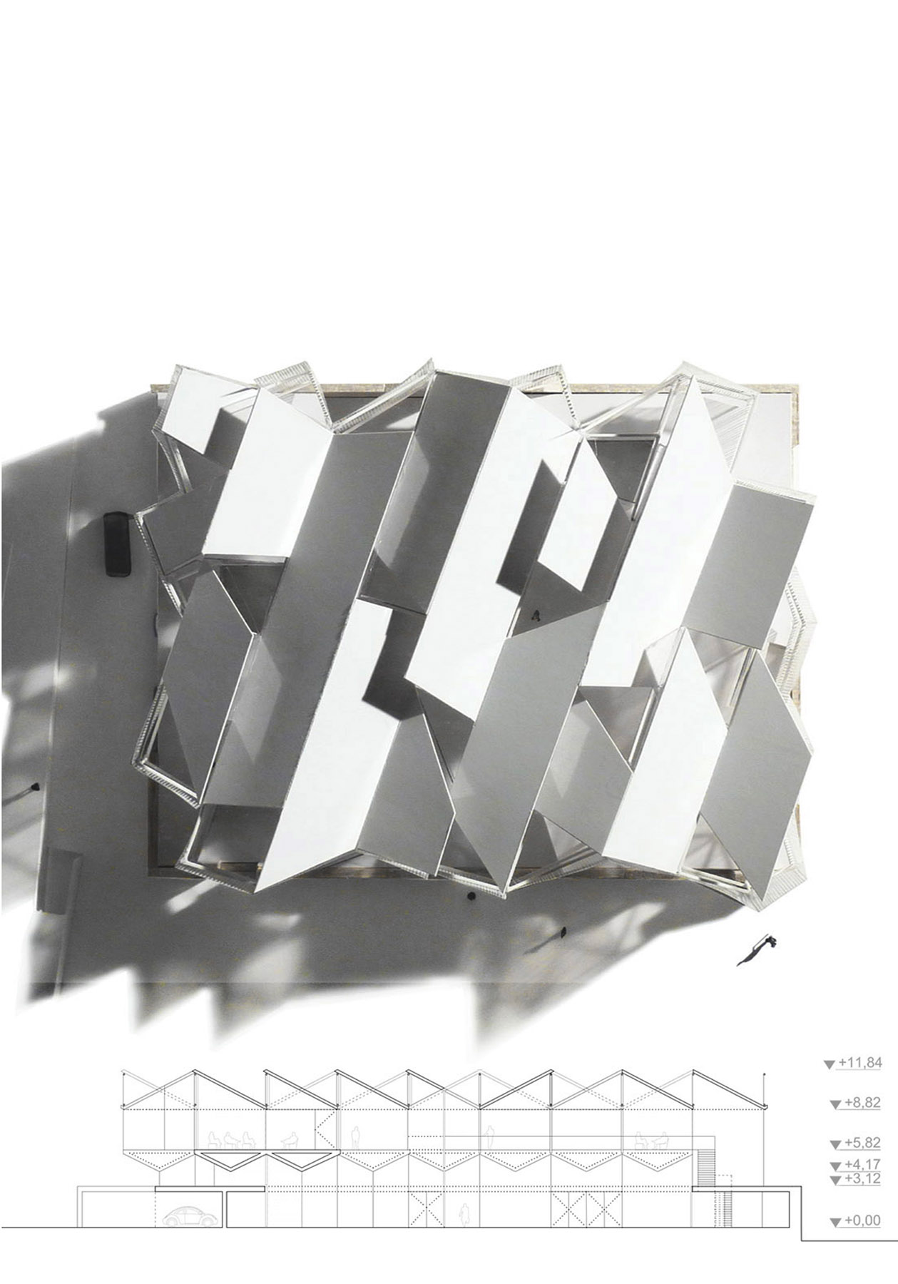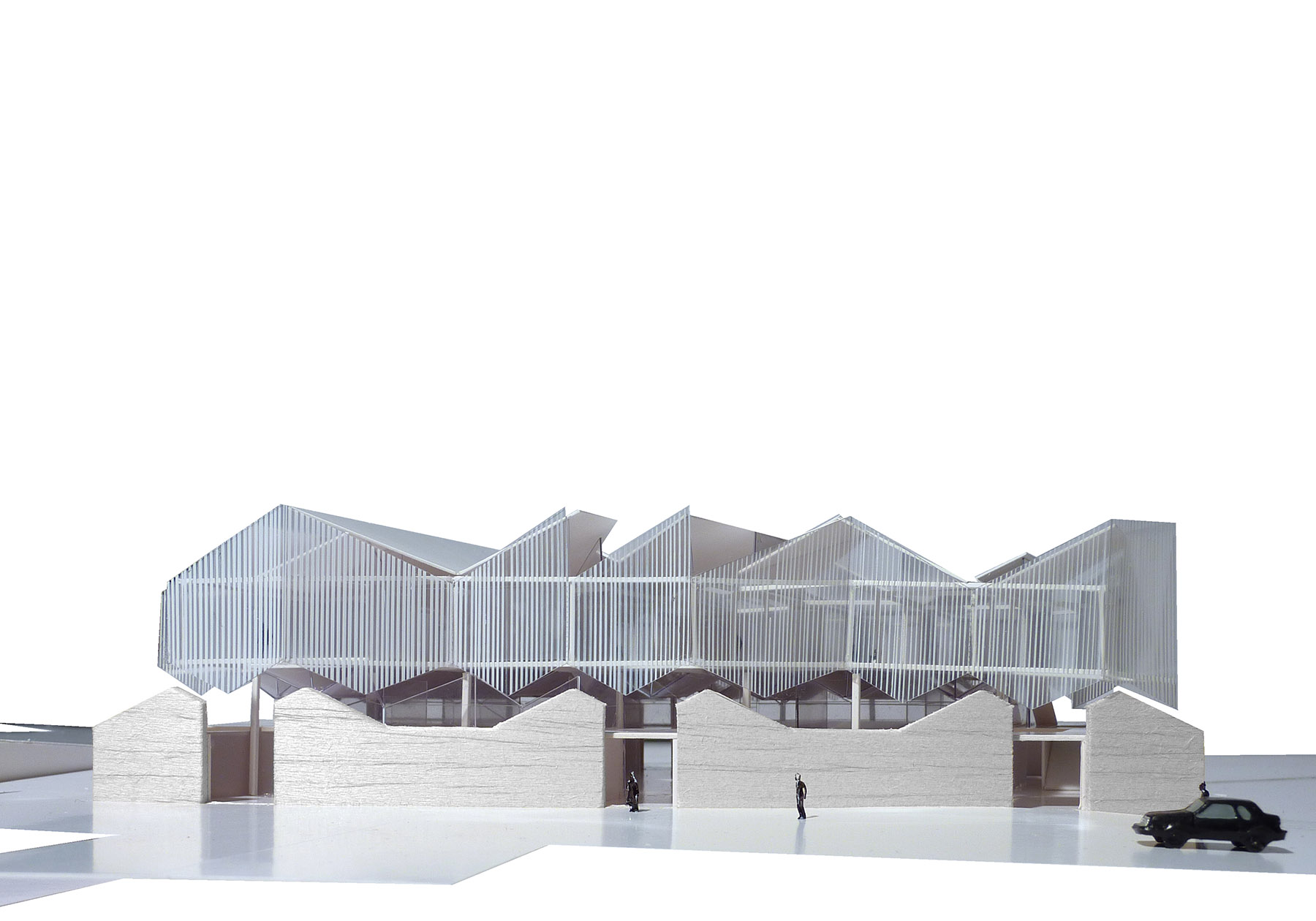 the building for the new cultural center of reinosa aims to generate a structure within the city that responds to multiple activities associated with culture, leisure and meeting places, where to put ideas into practice with economic activity. for this reason, the building shares its constructive and functional logic in one part with those typologies traditionally associated with sports, industrial and exhibition uses. the geometry of the building is organized on an underlying structure that has the will to order the spaces in a flexible way with all the concatenated areas. we use the mesh of the cairo, formed by 2 meshes of hexagons superimposed and rotated 90º. a deformation is introduced in an axis of said structure so that the main direction of the building is on horseback between the width and the length, appearing the diagonal that makes the program grouping more flexible while facing the south orientation. the functional program is solved in two floors. the ground floor where a large exterior void, semi-covered meeting place, orders around part of the program such as the cafeteria, access, multipurpose room, exhibitions and local servers and parking. on the top floor the program that could well be spaces for training and co-working is organized in several bays that turn over the main void.
