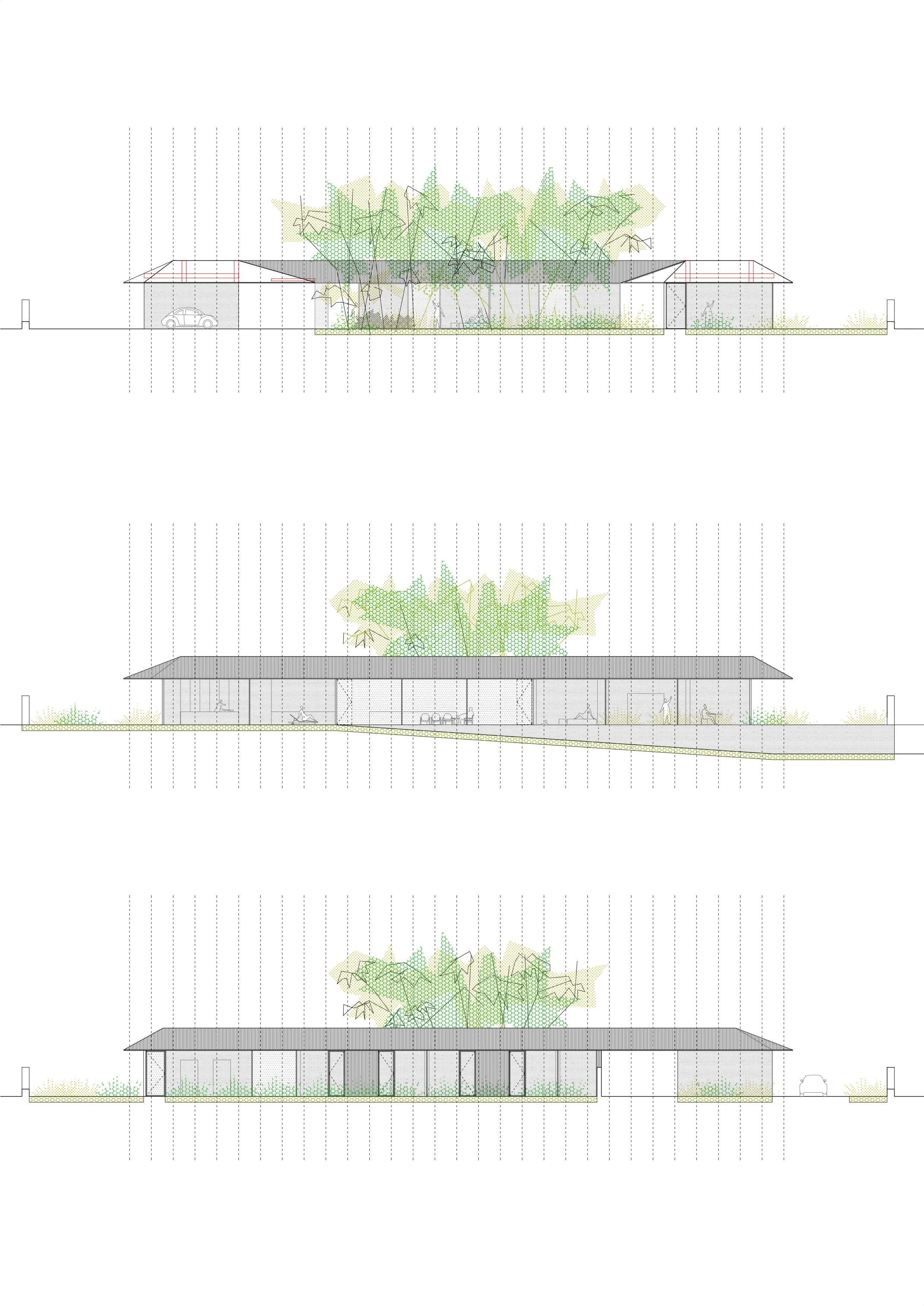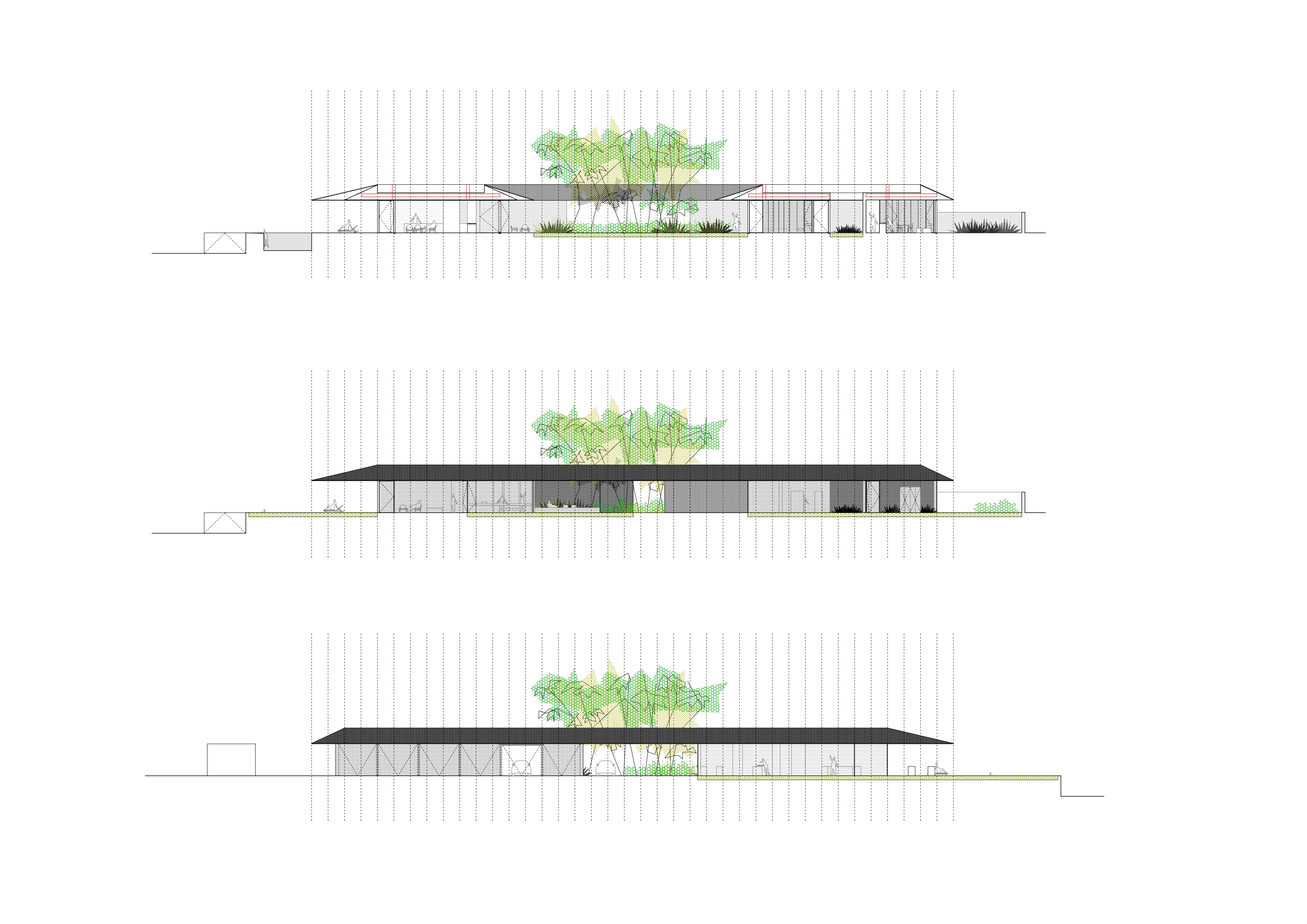a patio house shceme is presented in this project of a house with a jungle-like garden, like an oasis in the middle of the dessert to combat the extreme heat of abu dhabi.