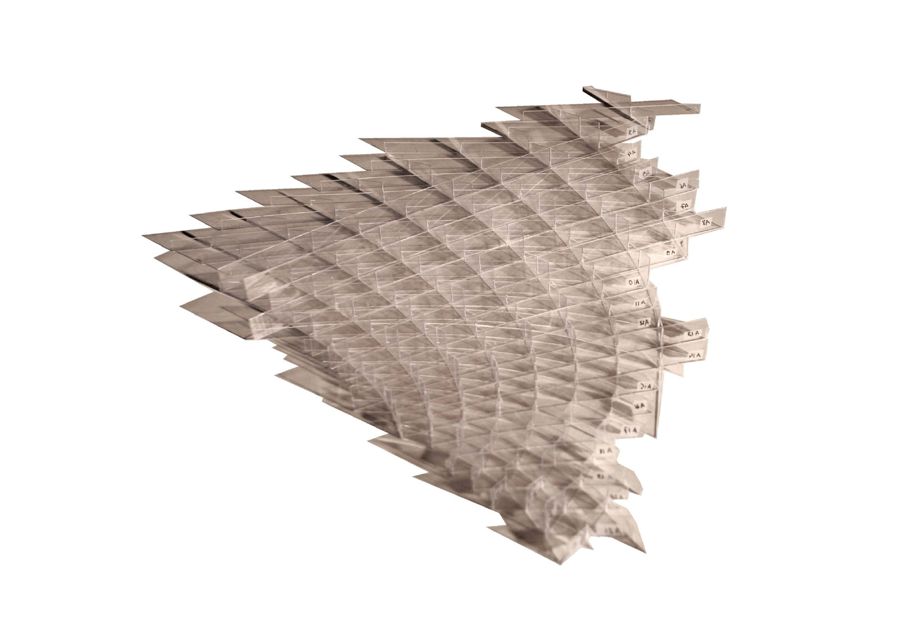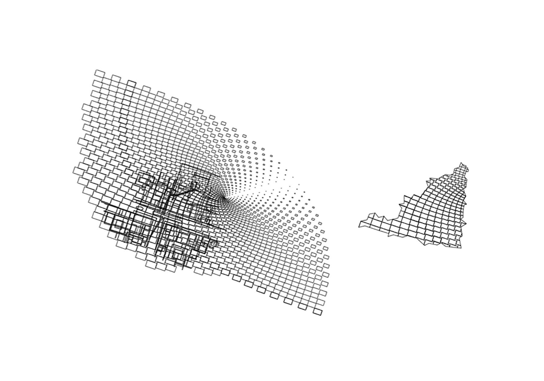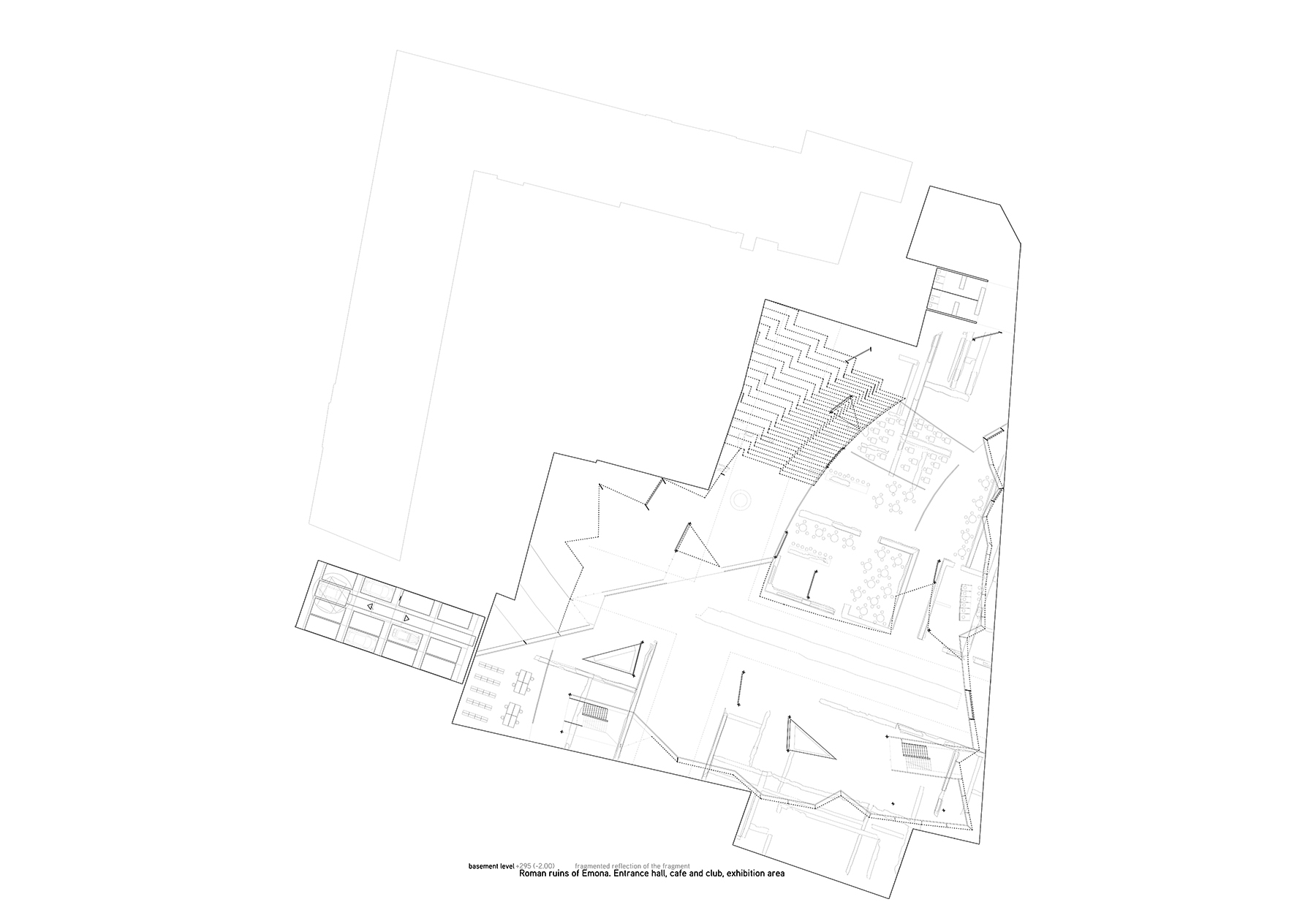 the mesh has been dimensioned and orientated as the ruins of emona and as a result of the adjustment three different directions are introduced on top of the existing layers, working in a coherent way with the ruins but a lot more free.