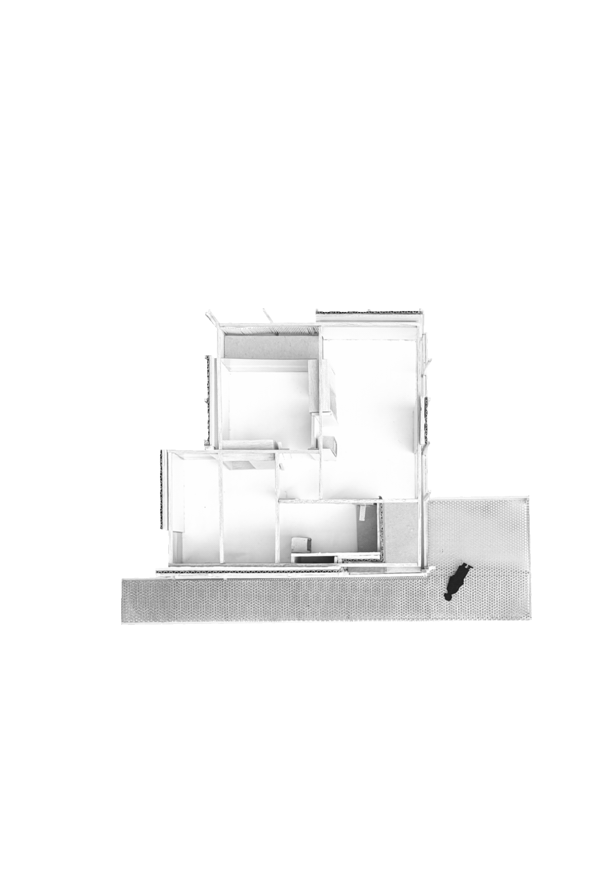 In staggered fashion, on the circulation spine, the inhabited spaces are patterned with (almost) equal rhythm. The elevated galleries, light and porous, tie the new with what exists. They serve as access and a recurring walk, observation and chat.