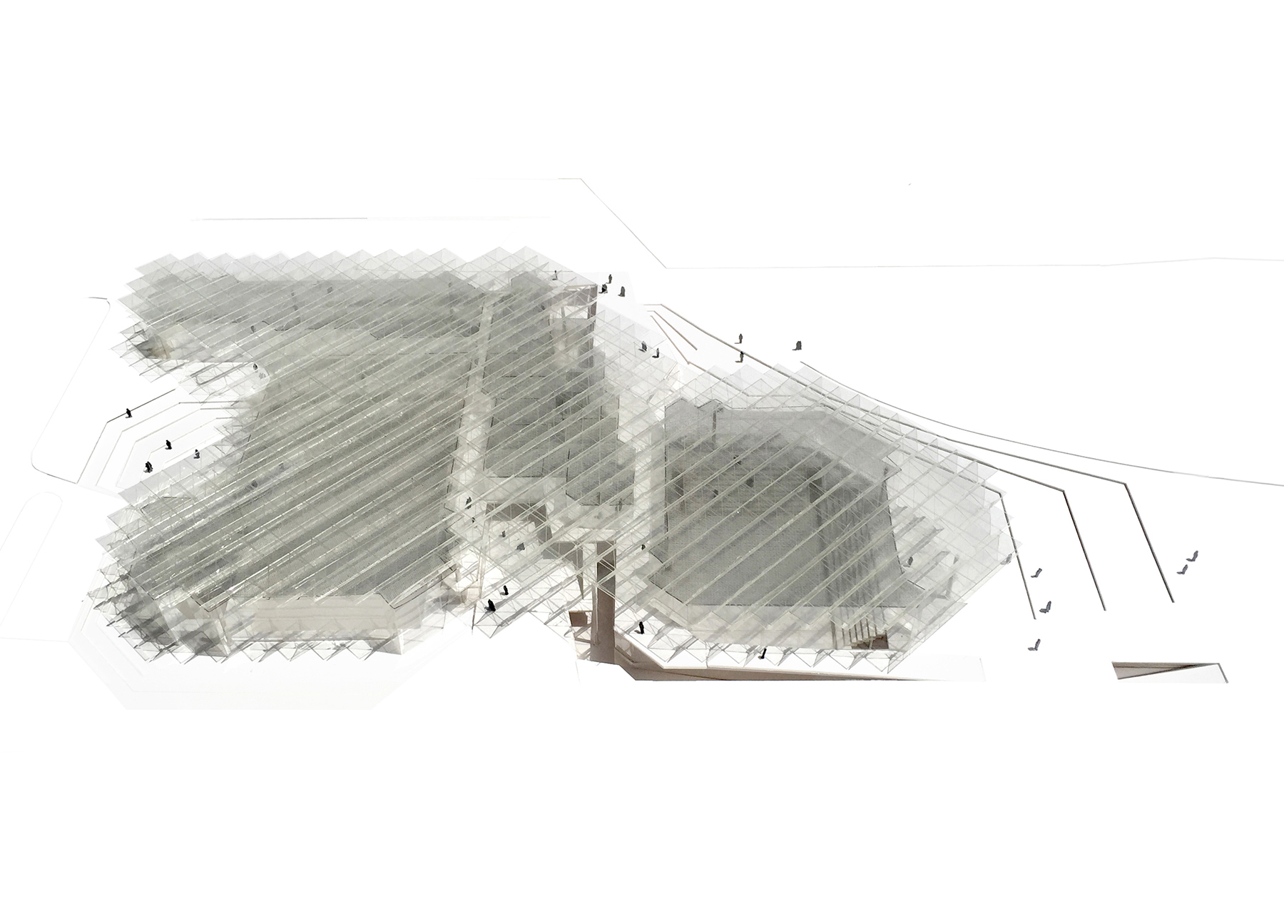 -between the main sports volumes a threshold is generated, which is allowed to cross when the park is open, turning the project itself into a new entrance.